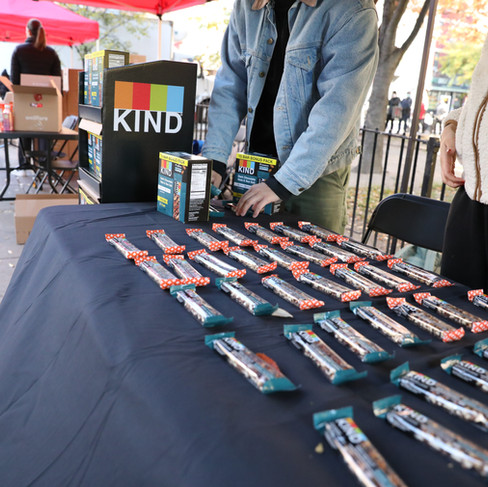 The launch event coincided with World Kindness Day — and this year, KIND went all in with Wellfare to give back. The day before our launch, 30+ KIND team members came to our Brooklyn HQ to pack Better Boxes with KIND bars and a variety of other nutritious and delicious products. And on launch day, KIND joined our volunteer crew to sign up 315 families and distribute over $78,000 worth of groceries to those in need.
